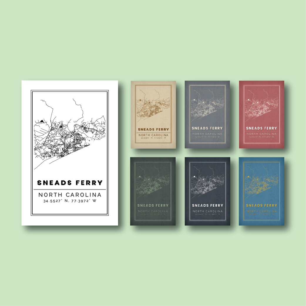 Show your love for Sneads Ferry with this detailed line map illustration highlighting the town’s […]